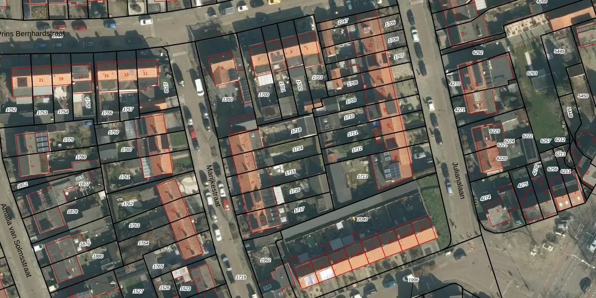 Gebruik de zoekbalk of klik op een perceel om informatie over het perceel te bekijken.
