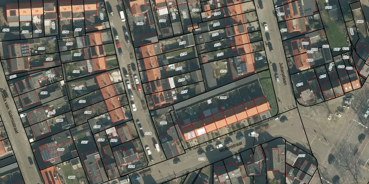 Gebruik de zoekbalk of klik op een perceel om informatie over het perceel te bekijken.