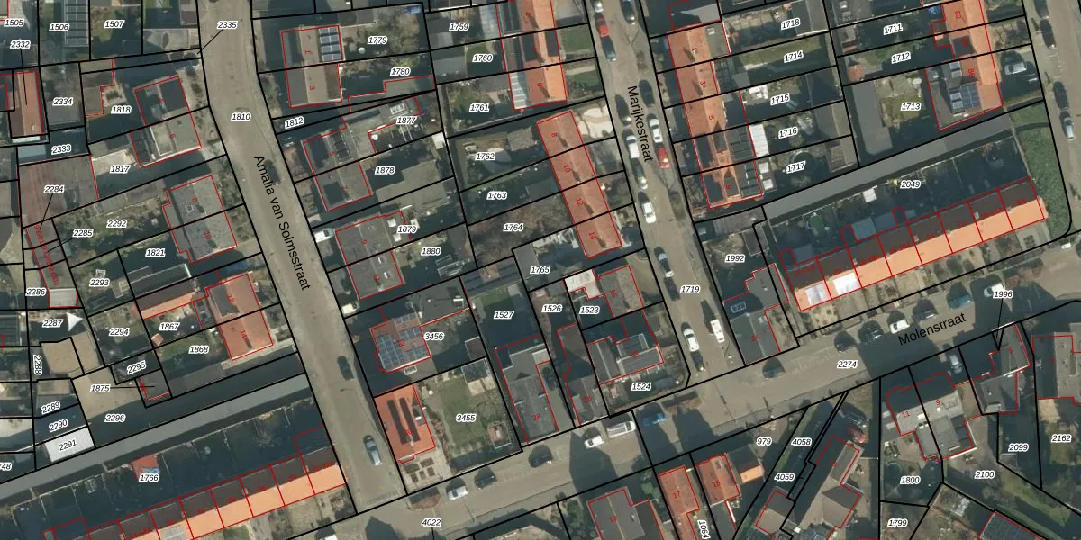 Gebruik de zoekbalk of klik op een perceel om informatie over het perceel te bekijken.