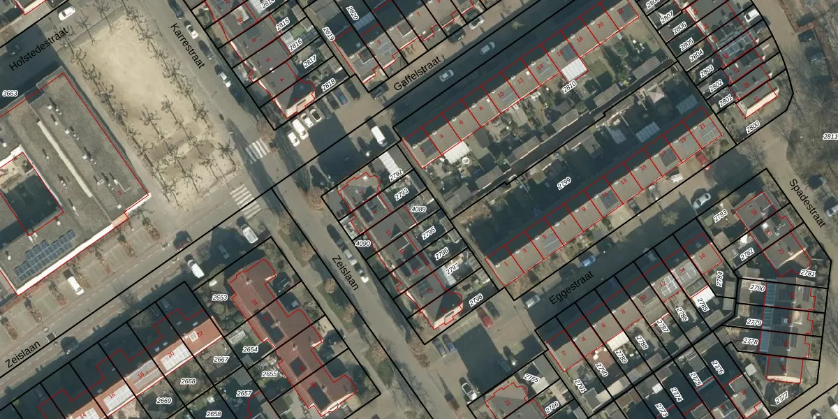 Gebruik de zoekbalk of klik op een perceel om informatie over het perceel te bekijken.