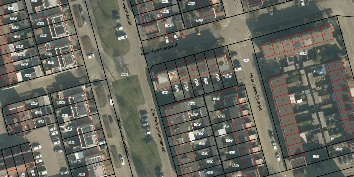 Gebruik de zoekbalk of klik op een perceel om informatie over het perceel te bekijken.