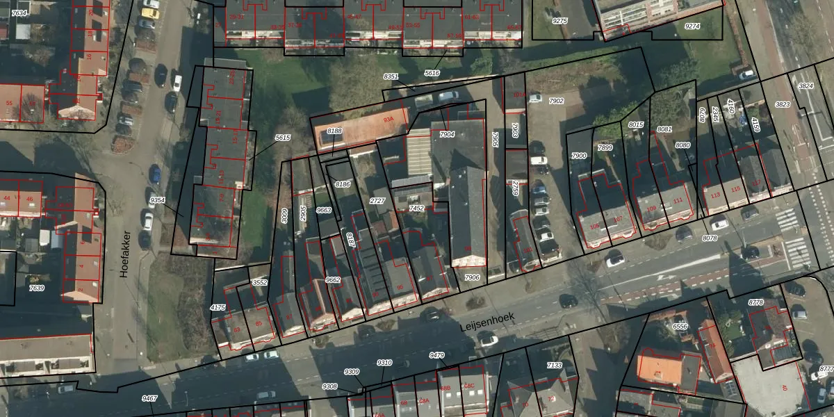 Gebruik de zoekbalk of klik op een perceel om informatie over het perceel te bekijken.