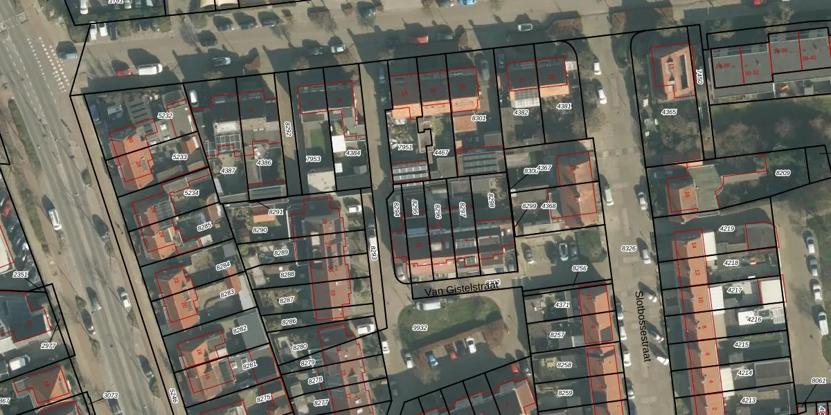 Gebruik de zoekbalk of klik op een perceel om informatie over het perceel te bekijken.
