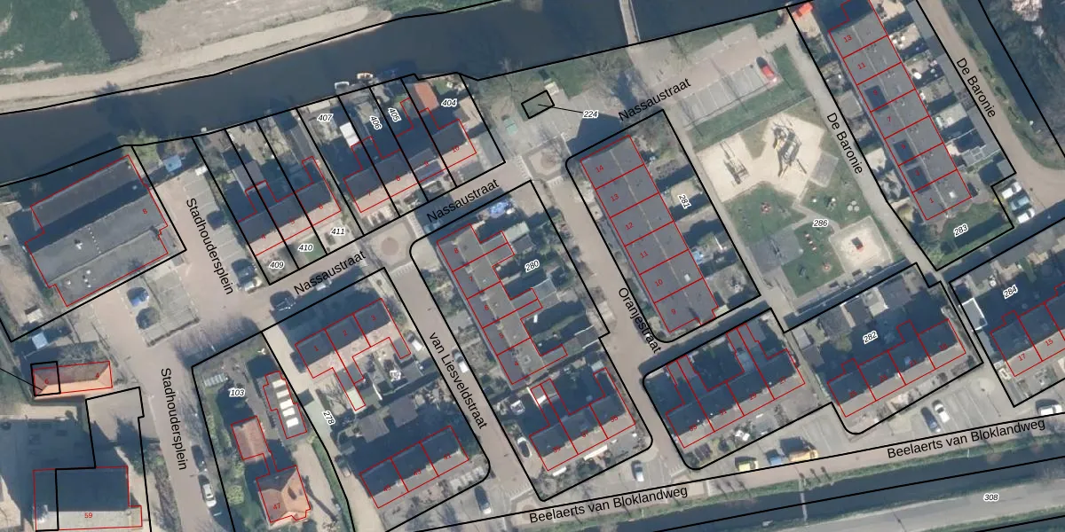 Gebruik de zoekbalk of klik op een perceel om informatie over het perceel te bekijken.