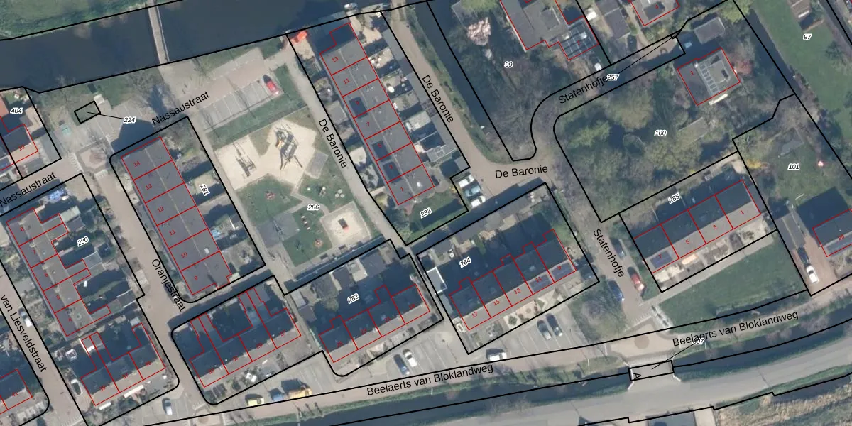 Gebruik de zoekbalk of klik op een perceel om informatie over het perceel te bekijken.