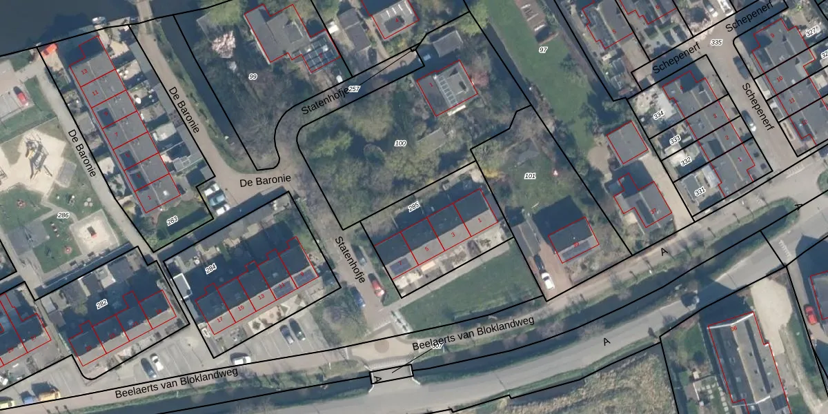 Gebruik de zoekbalk of klik op een perceel om informatie over het perceel te bekijken.