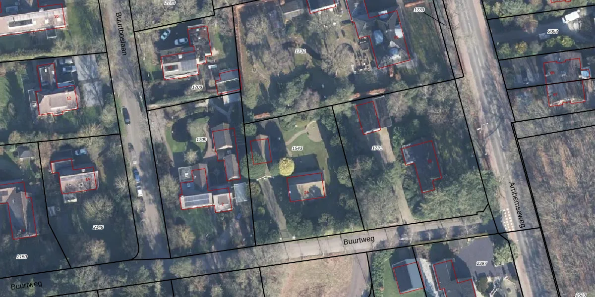 Gebruik de zoekbalk of klik op een perceel om informatie over het perceel te bekijken.