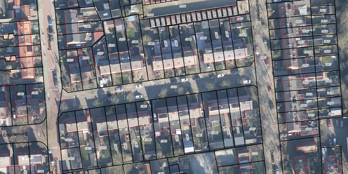 Gebruik de zoekbalk of klik op een perceel om informatie over het perceel te bekijken.