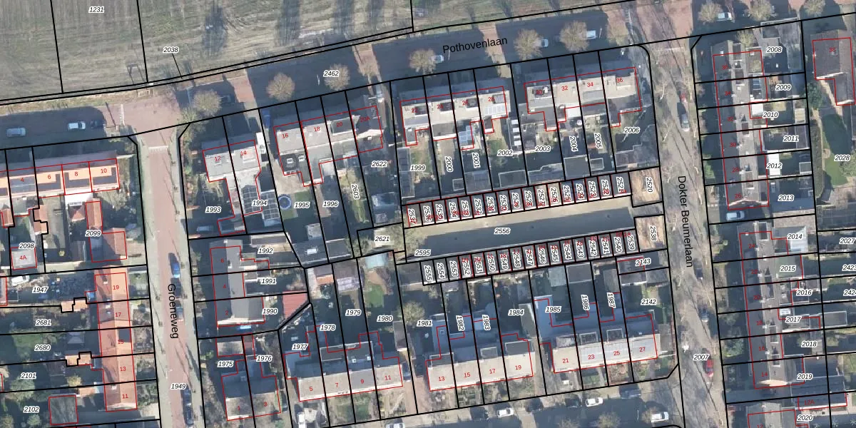 Gebruik de zoekbalk of klik op een perceel om informatie over het perceel te bekijken.