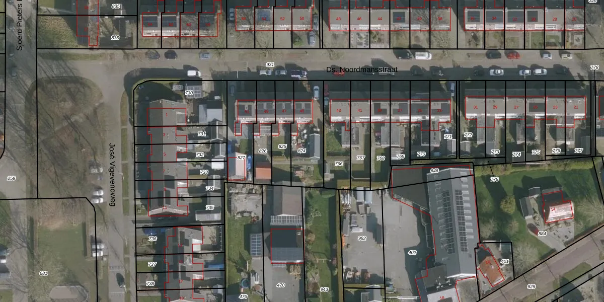 Gebruik de zoekbalk of klik op een perceel om informatie over het perceel te bekijken.