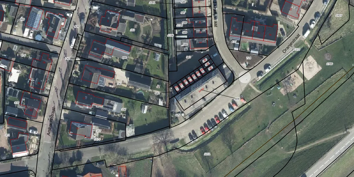 Gebruik de zoekbalk of klik op een perceel om informatie over het perceel te bekijken.