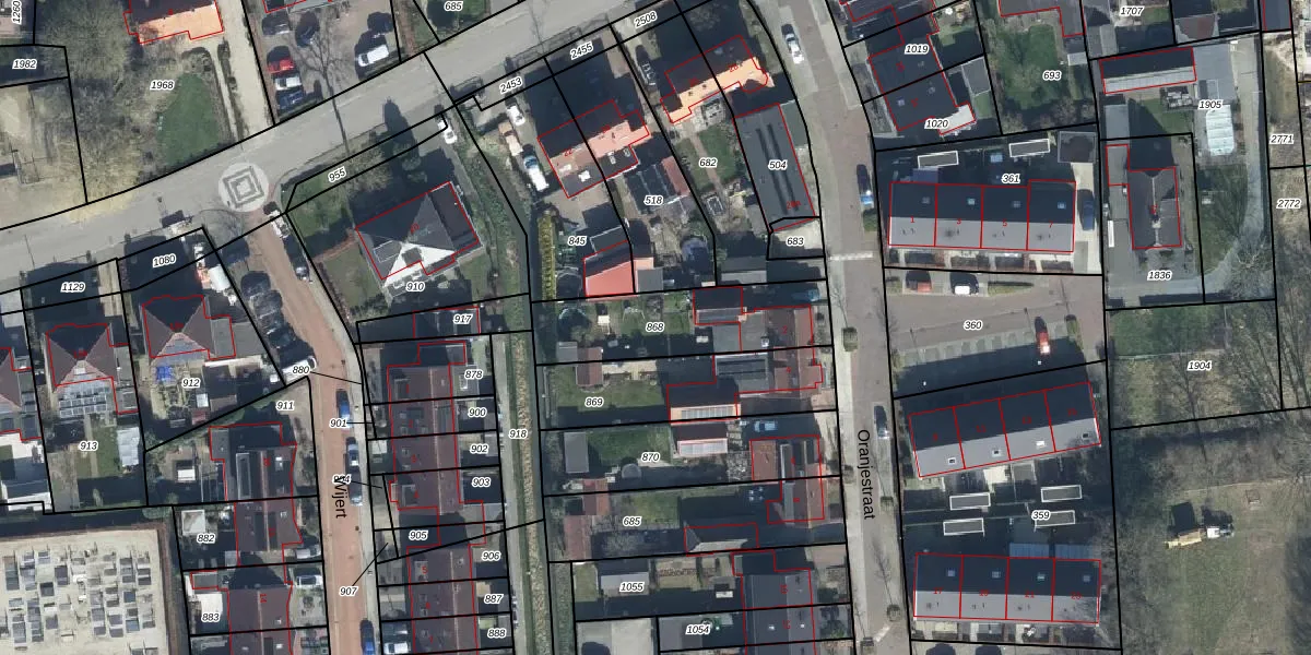 Gebruik de zoekbalk of klik op een perceel om informatie over het perceel te bekijken.