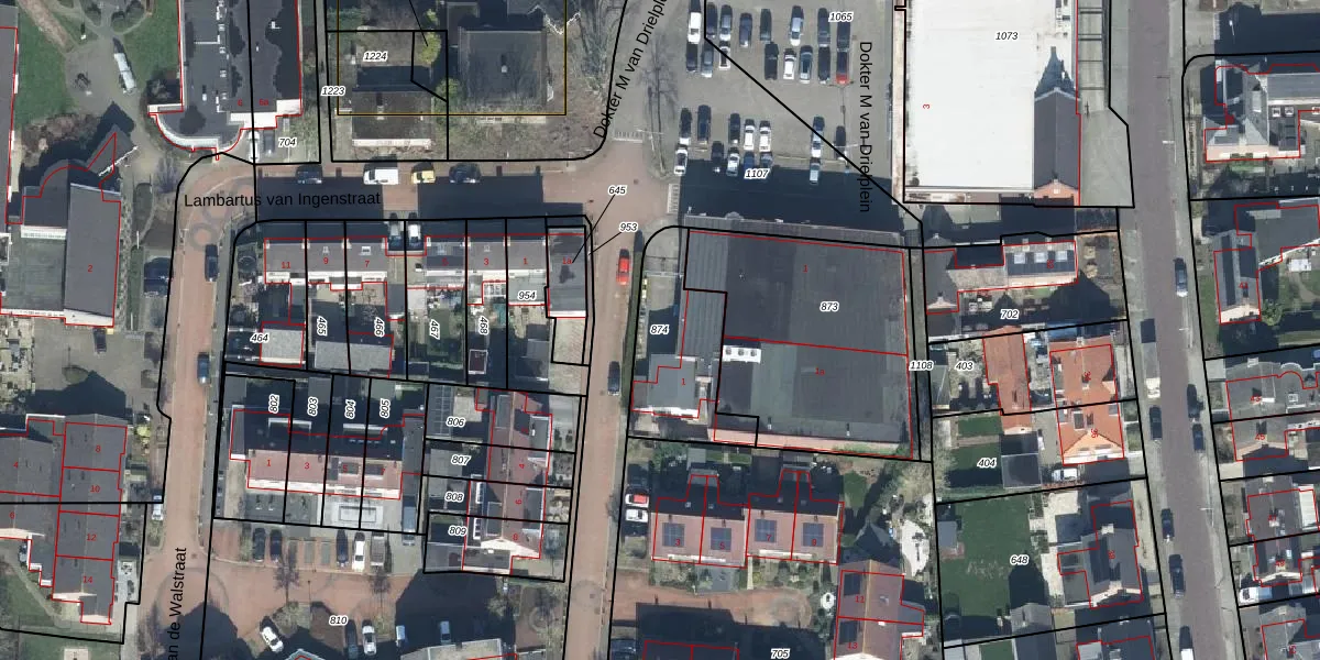 Gebruik de zoekbalk of klik op een perceel om informatie over het perceel te bekijken.