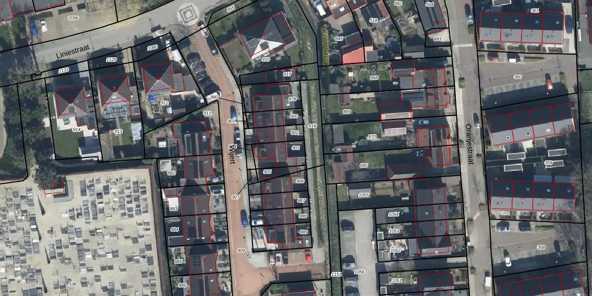 Gebruik de zoekbalk of klik op een perceel om informatie over het perceel te bekijken.