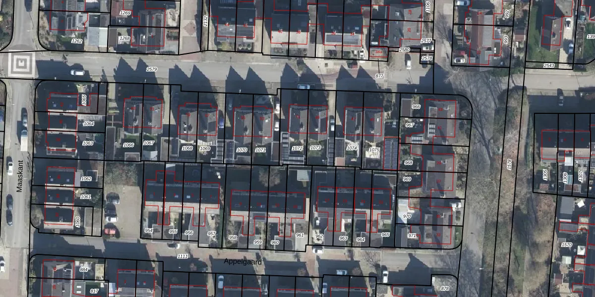 Gebruik de zoekbalk of klik op een perceel om informatie over het perceel te bekijken.