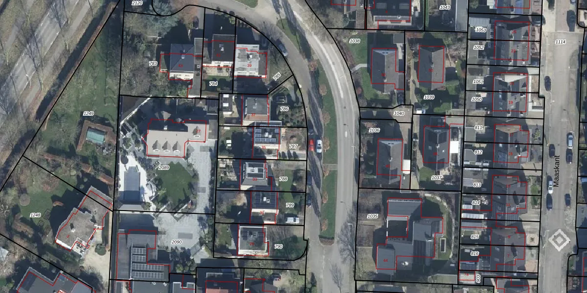Gebruik de zoekbalk of klik op een perceel om informatie over het perceel te bekijken.