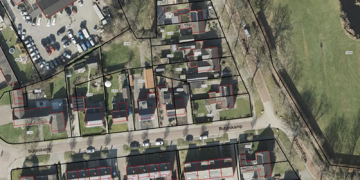 Gebruik de zoekbalk of klik op een perceel om informatie over het perceel te bekijken.