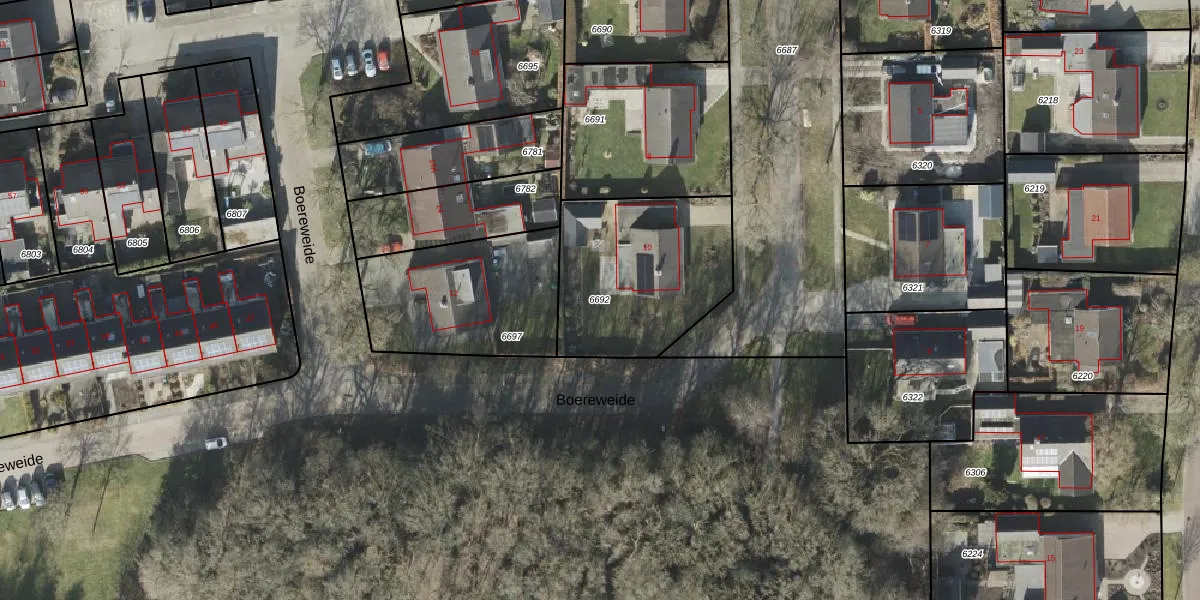 Gebruik de zoekbalk of klik op een perceel om informatie over het perceel te bekijken.