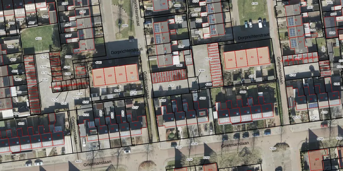 Gebruik de zoekbalk of klik op een perceel om informatie over het perceel te bekijken.