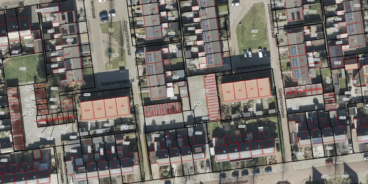 Gebruik de zoekbalk of klik op een perceel om informatie over het perceel te bekijken.