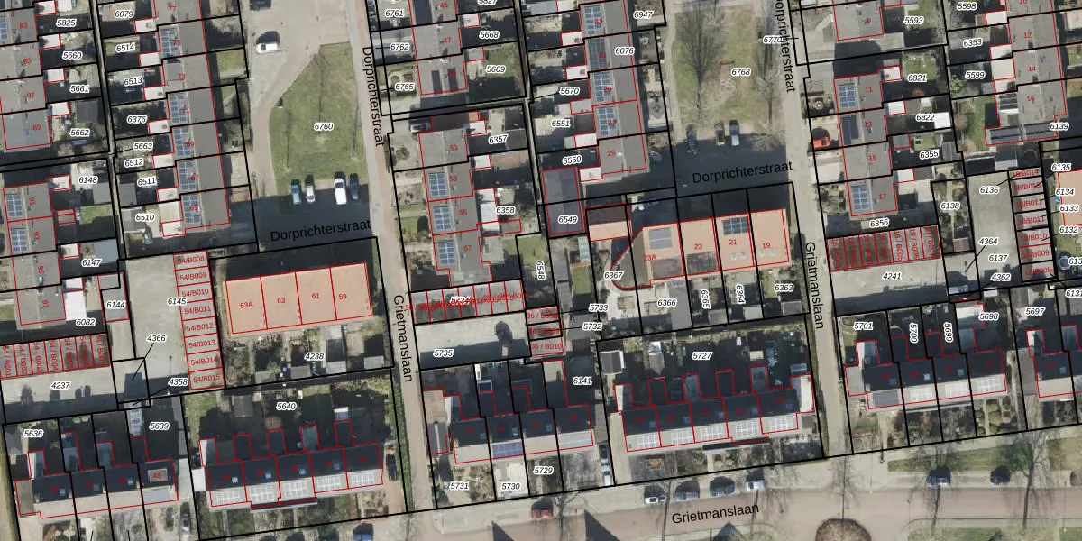 Gebruik de zoekbalk of klik op een perceel om informatie over het perceel te bekijken.