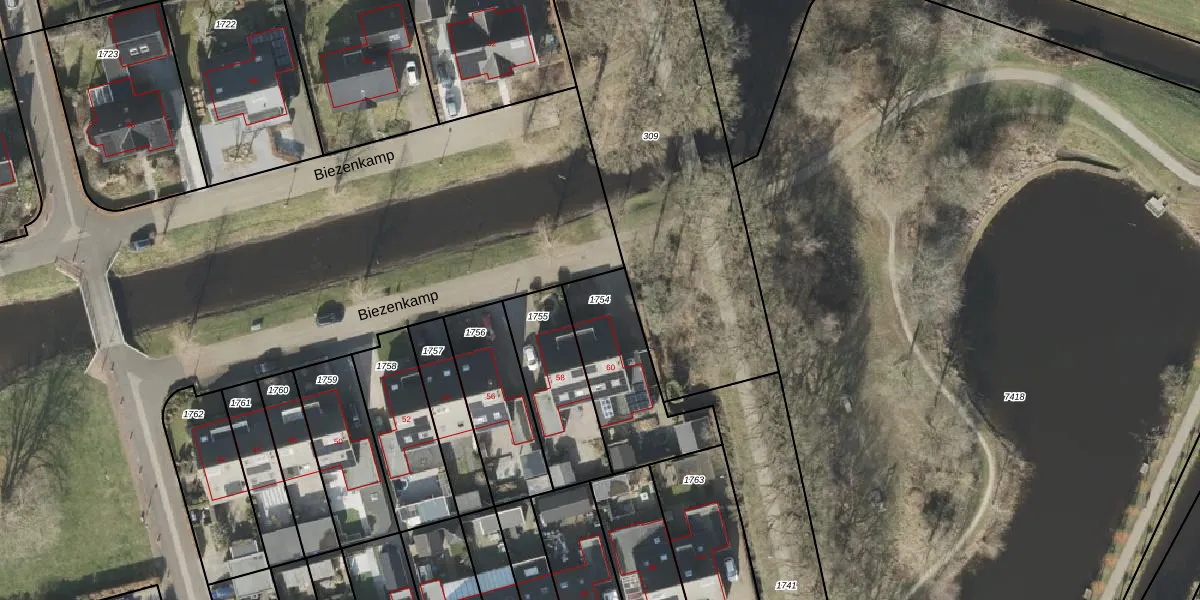 Gebruik de zoekbalk of klik op een perceel om informatie over het perceel te bekijken.