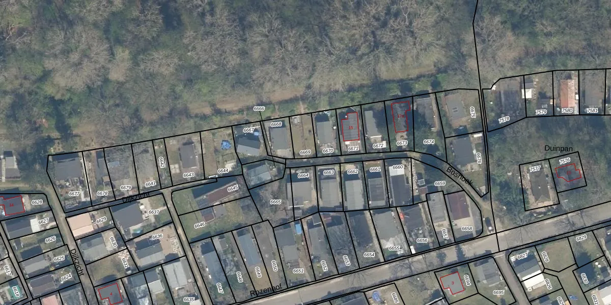 Gebruik de zoekbalk of klik op een perceel om informatie over het perceel te bekijken.