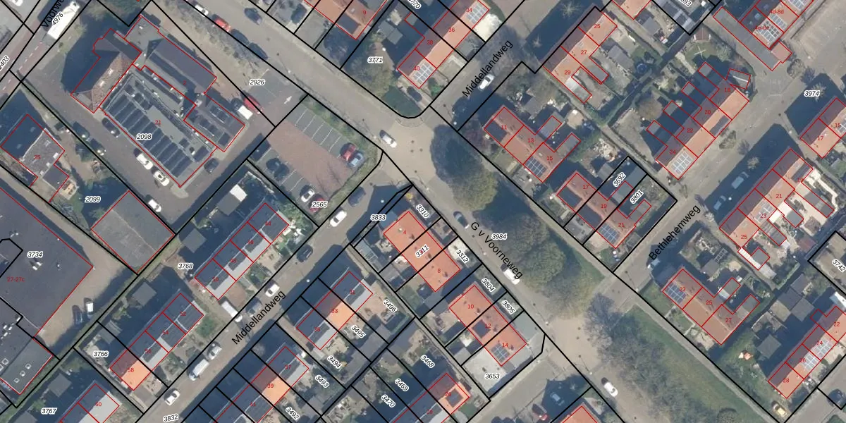 Gebruik de zoekbalk of klik op een perceel om informatie over het perceel te bekijken.
