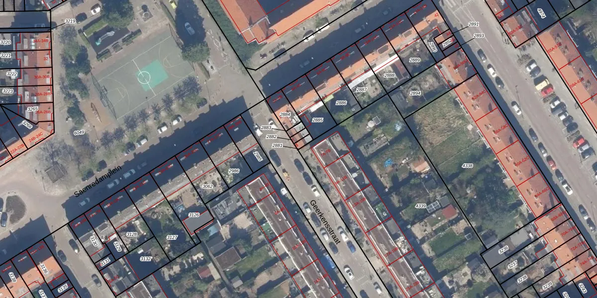Gebruik de zoekbalk of klik op een perceel om informatie over het perceel te bekijken.