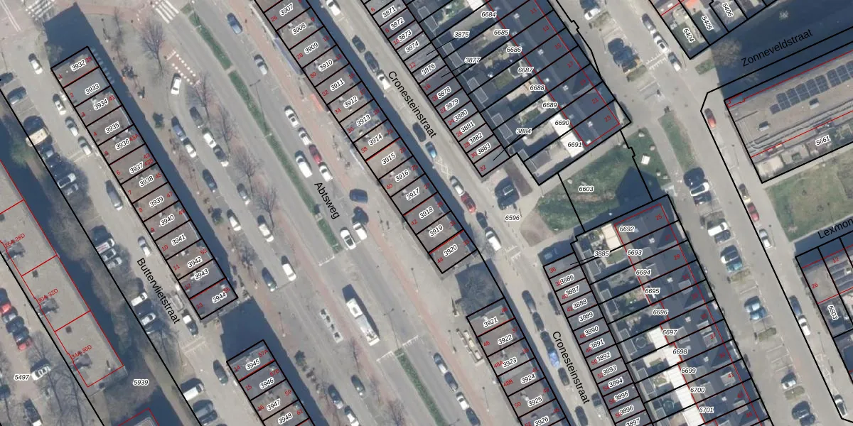 Gebruik de zoekbalk of klik op een perceel om informatie over het perceel te bekijken.