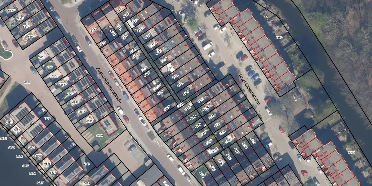 Gebruik de zoekbalk of klik op een perceel om informatie over het perceel te bekijken.
