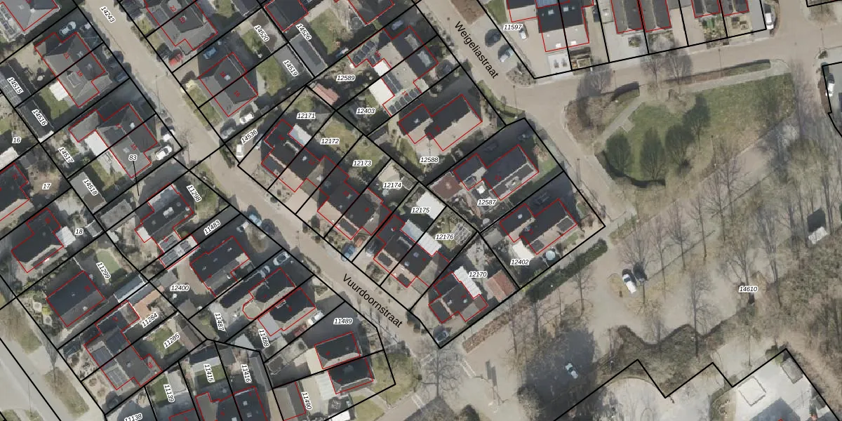 Gebruik de zoekbalk of klik op een perceel om informatie over het perceel te bekijken.