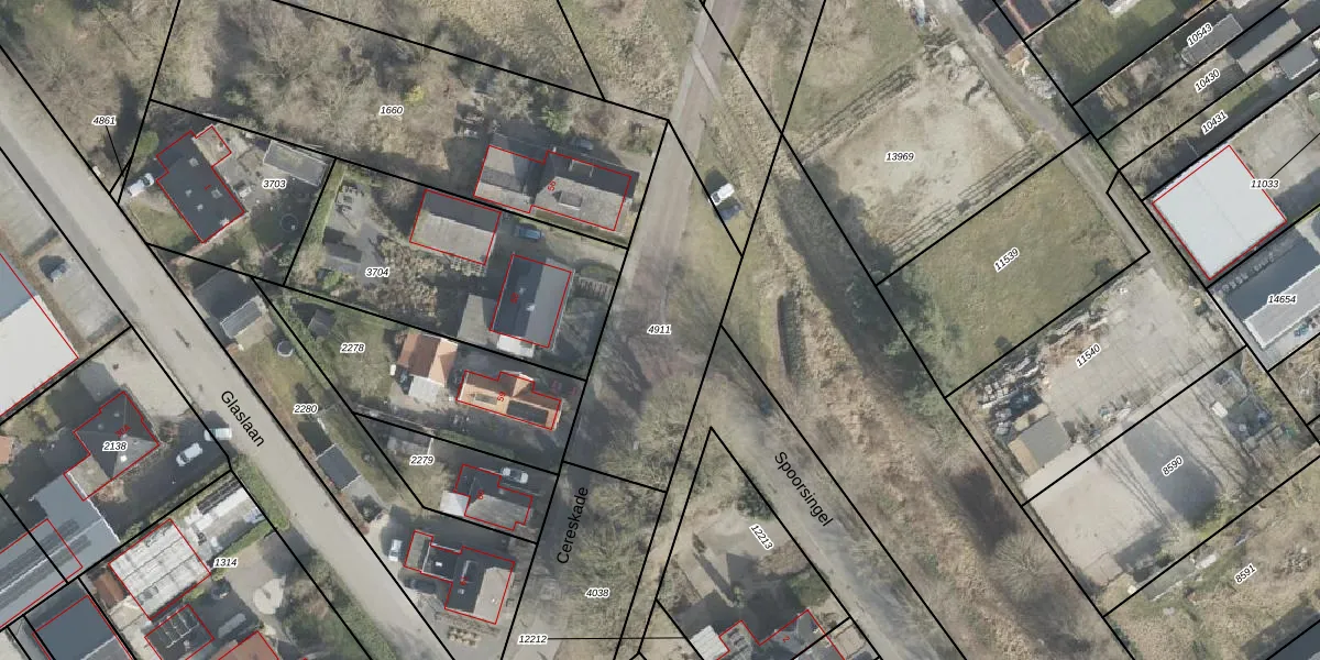 Gebruik de zoekbalk of klik op een perceel om informatie over het perceel te bekijken.