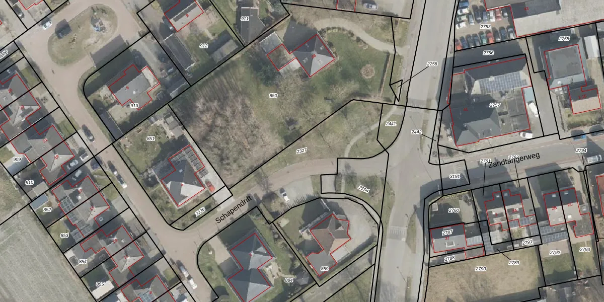 Gebruik de zoekbalk of klik op een perceel om informatie over het perceel te bekijken.