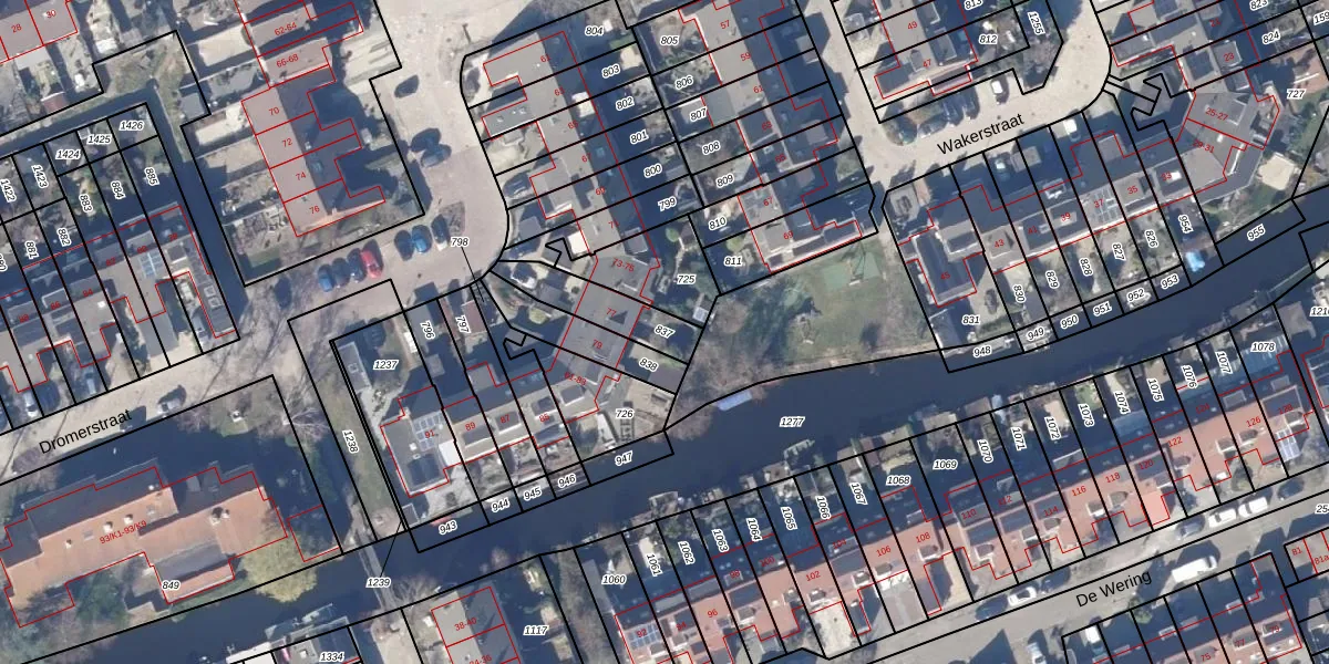 Gebruik de zoekbalk of klik op een perceel om informatie over het perceel te bekijken.