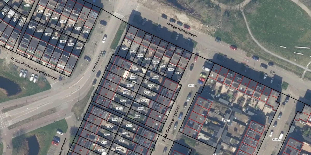 Gebruik de zoekbalk of klik op een perceel om informatie over het perceel te bekijken.