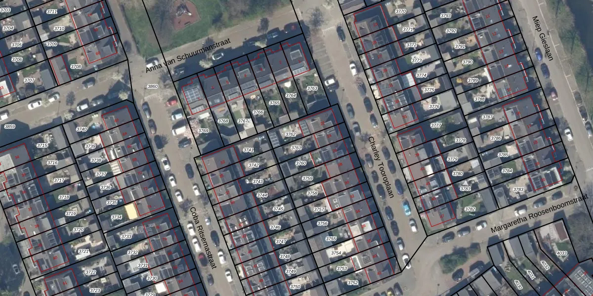 Gebruik de zoekbalk of klik op een perceel om informatie over het perceel te bekijken.