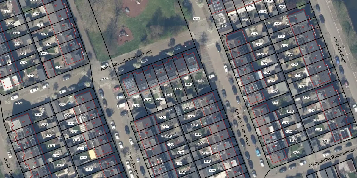 Gebruik de zoekbalk of klik op een perceel om informatie over het perceel te bekijken.