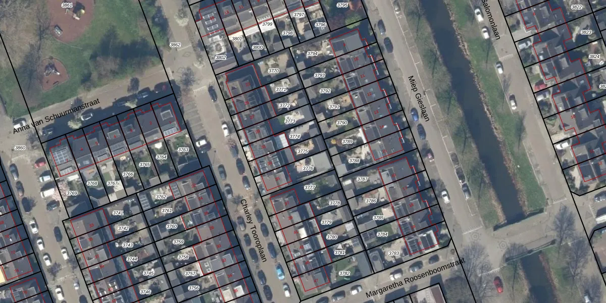 Gebruik de zoekbalk of klik op een perceel om informatie over het perceel te bekijken.