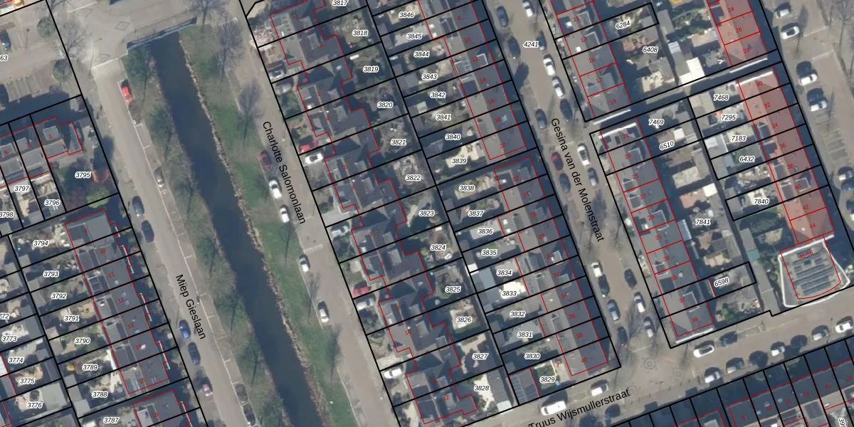 Gebruik de zoekbalk of klik op een perceel om informatie over het perceel te bekijken.