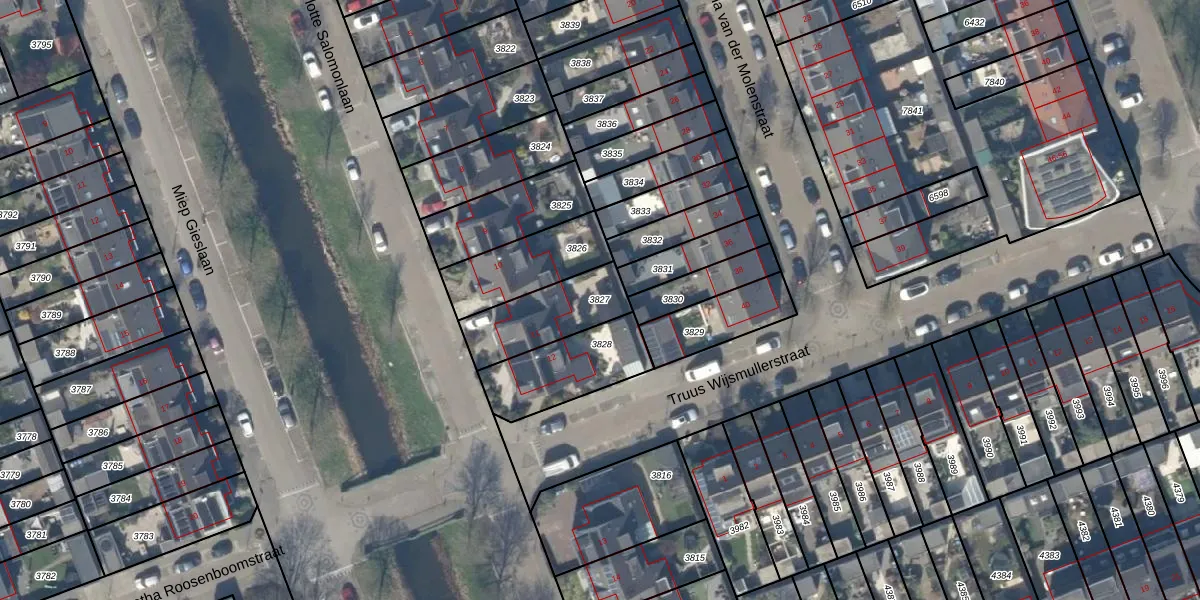 Gebruik de zoekbalk of klik op een perceel om informatie over het perceel te bekijken.