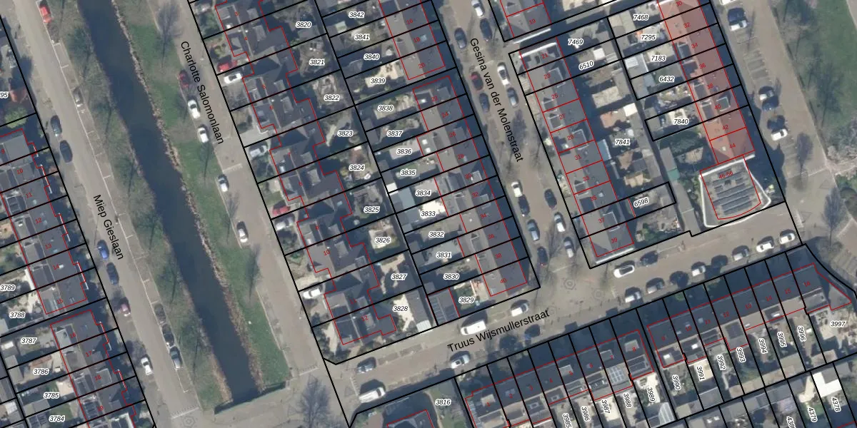 Gebruik de zoekbalk of klik op een perceel om informatie over het perceel te bekijken.