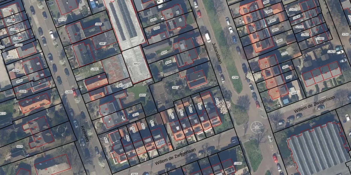 Gebruik de zoekbalk of klik op een perceel om informatie over het perceel te bekijken.