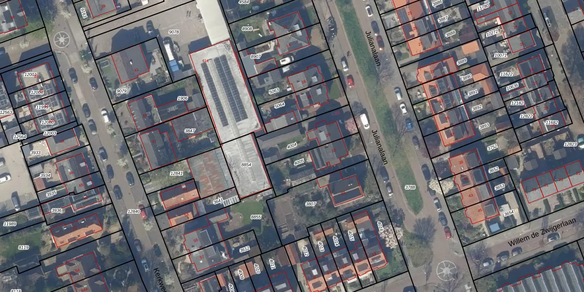 Gebruik de zoekbalk of klik op een perceel om informatie over het perceel te bekijken.