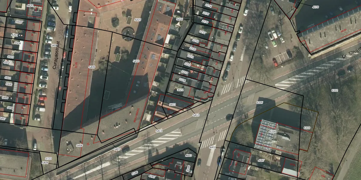Gebruik de zoekbalk of klik op een perceel om informatie over het perceel te bekijken.