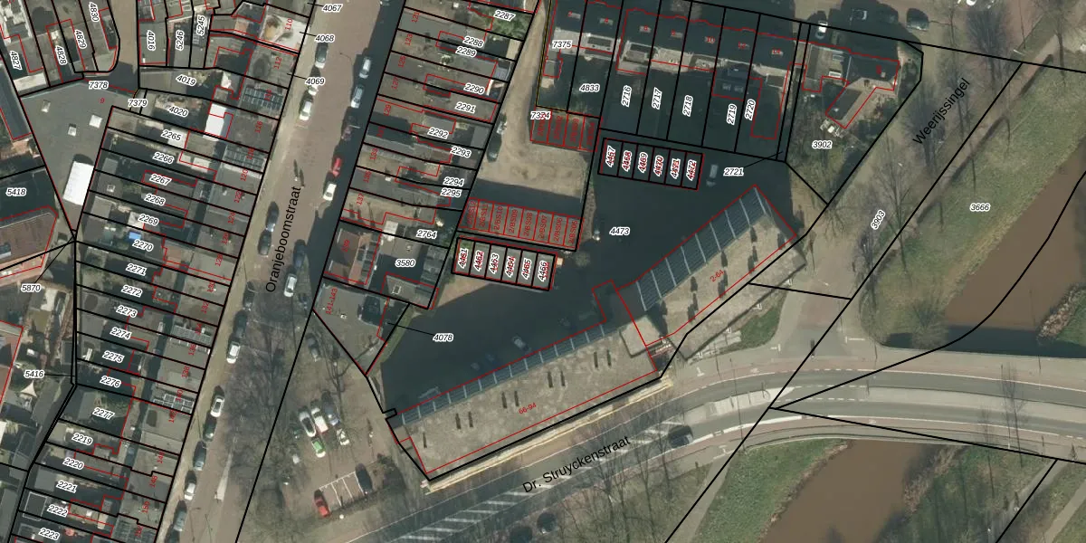 Gebruik de zoekbalk of klik op een perceel om informatie over het perceel te bekijken.
