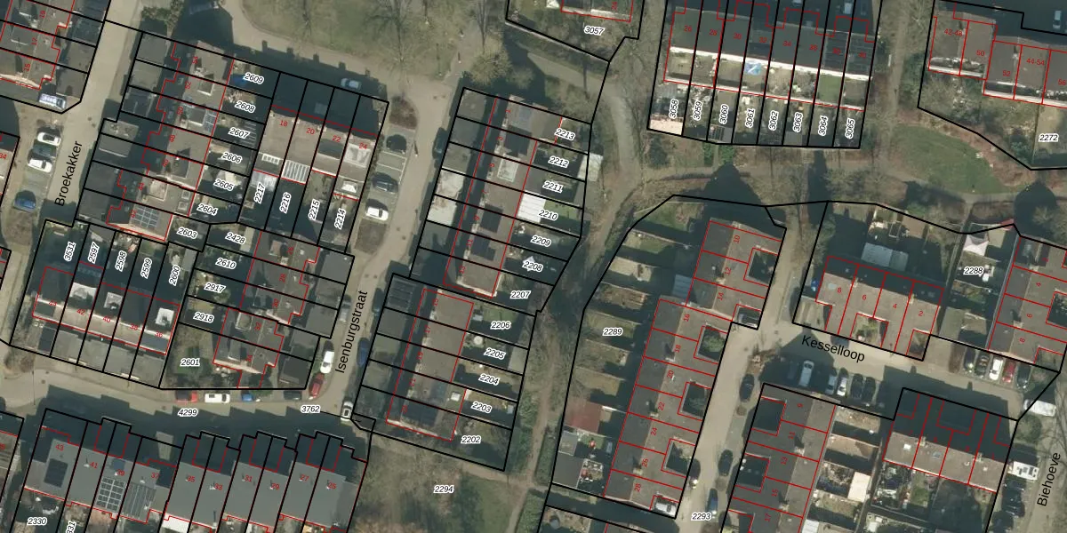 Gebruik de zoekbalk of klik op een perceel om informatie over het perceel te bekijken.