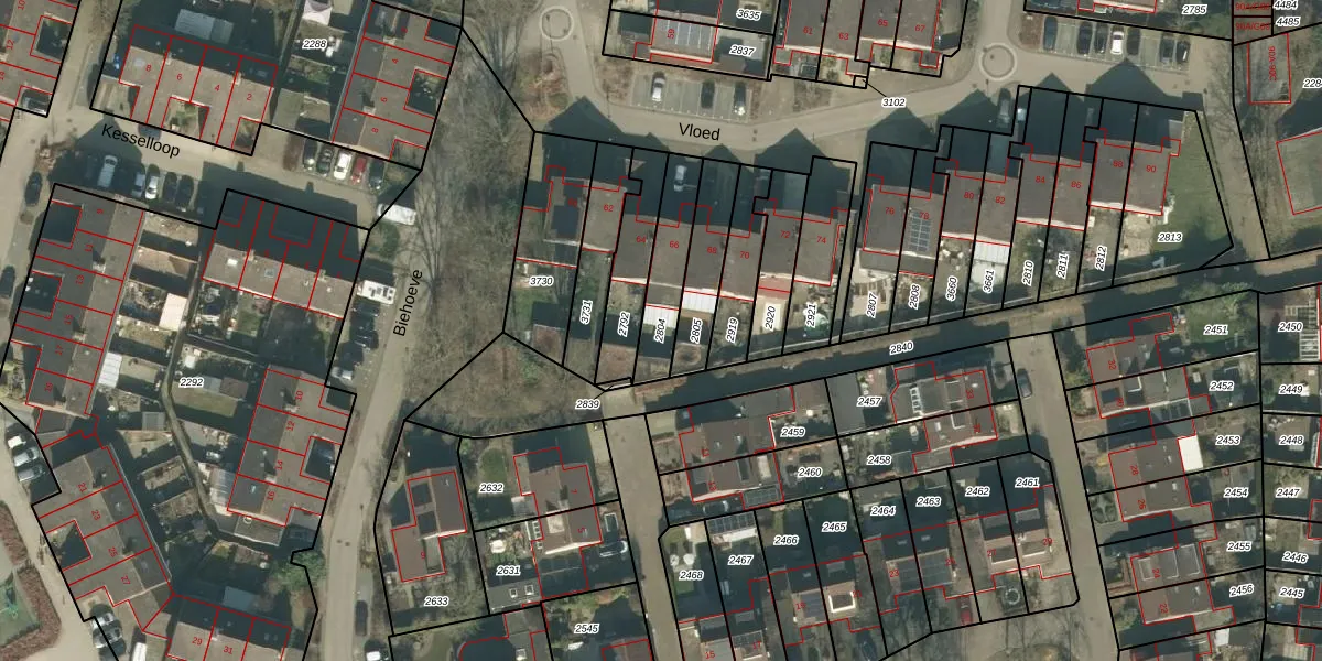 Gebruik de zoekbalk of klik op een perceel om informatie over het perceel te bekijken.