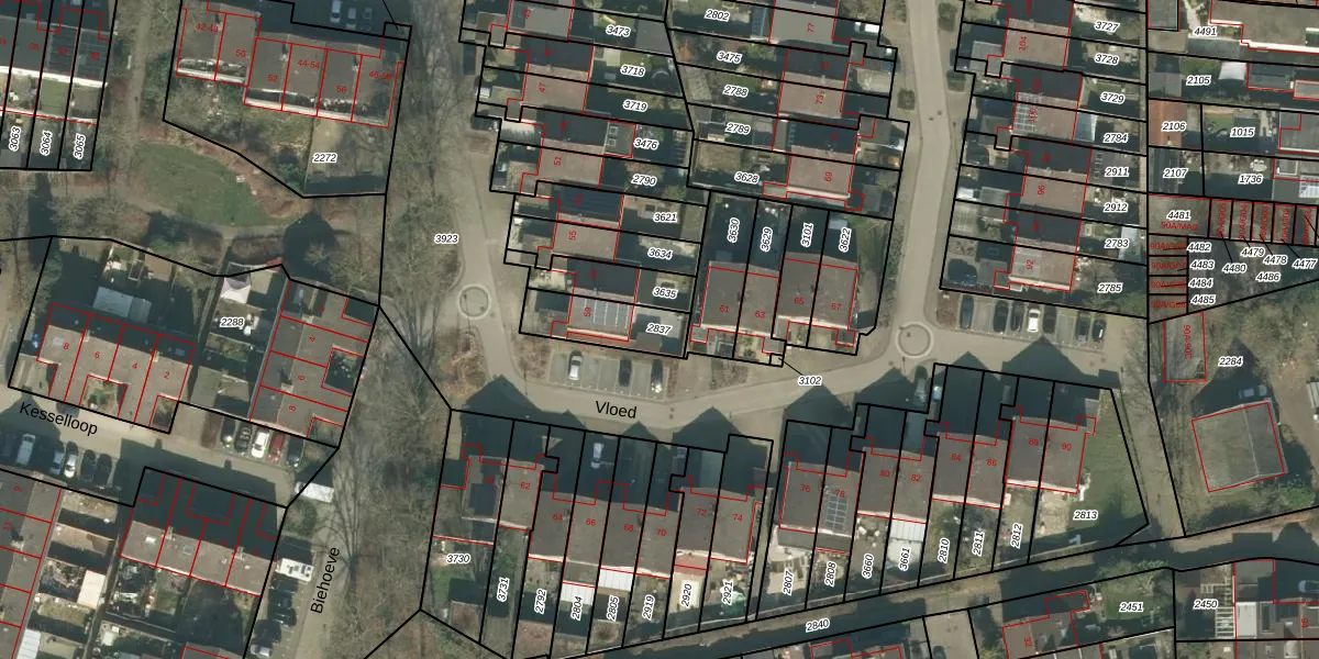 Gebruik de zoekbalk of klik op een perceel om informatie over het perceel te bekijken.