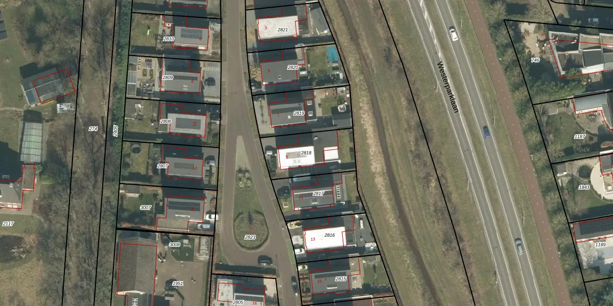 Gebruik de zoekbalk of klik op een perceel om informatie over het perceel te bekijken.